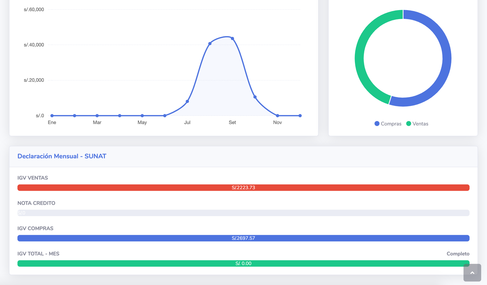 Mediante este módulo puedes monitorear los montos a declarar, registro de ventas, registro de compras y declaraciones entre otros.